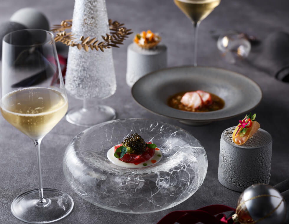 ソフトラグジュアリーな空間でお楽しみ頂く、カリフォルニアスタイルのクリスマスコース。旬の食材で丁寧に織りなす限定コースを大切な人と是非。