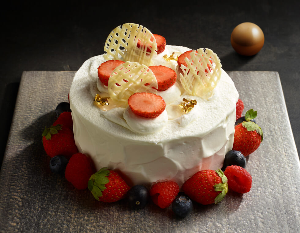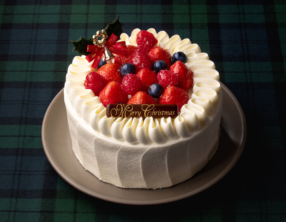 ふわっふわのスポンジと生クリームのバランスにこだわり抜いた王道ショートケーキ。3種のベリーがクリスマスの食卓を華やかに彩ります。<予約限定>