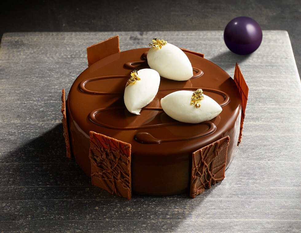 世界的コンクールで数々の受賞歴を誇るエグゼクティブペストリーシェフ野島茂のシグネチャーとなる、レモンやナッツを使用したチョコレートケーキ。