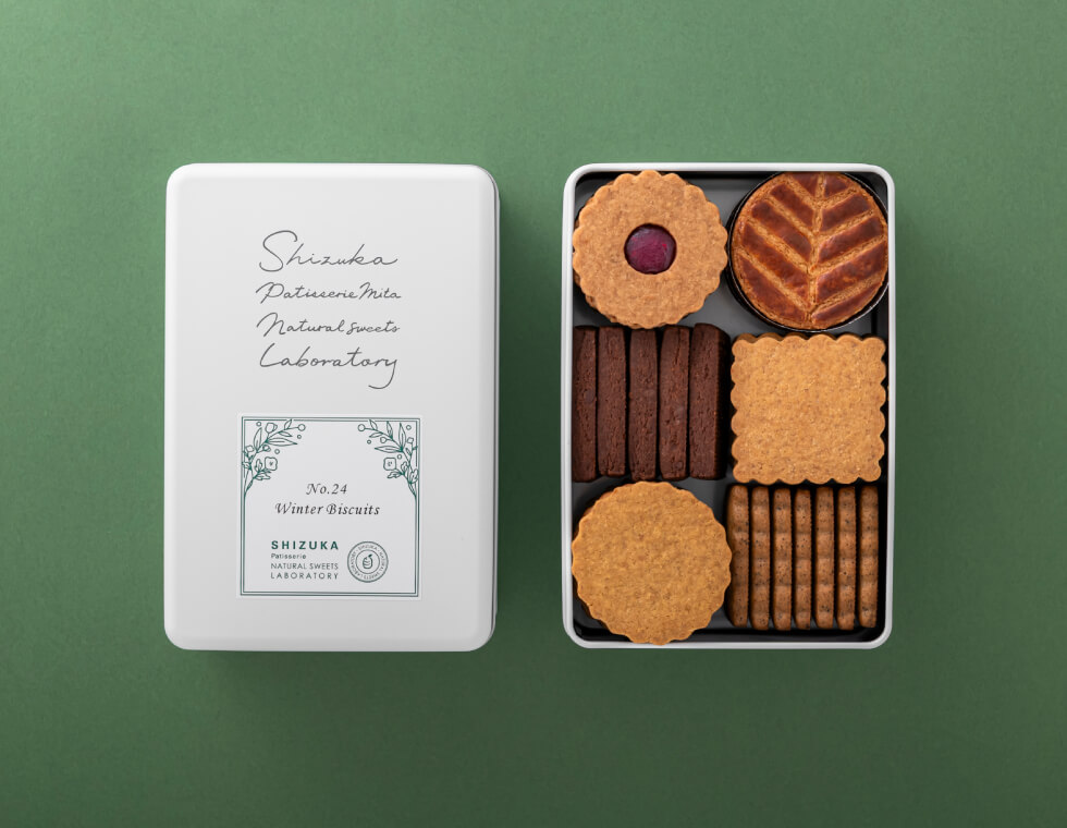 無農薬栽培のフランボワーズのジャムサンドや京都宇治産有機茶葉のアールグレイのビスケット、リッチな食感のガレットブルトンヌ等を詰め合わせたギフトぴったりの冬期限定品。