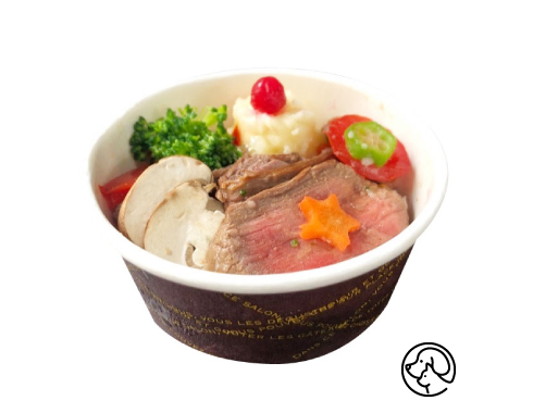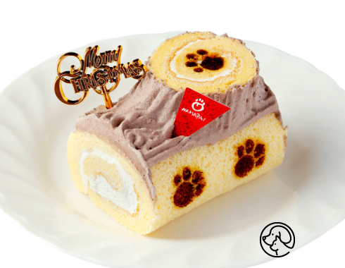 かわいらしいミニサイズのブッシュドノエルです。北海道産米粉を使用した、ふわふわスポンジ生地で豆乳クリームを巻き込み、キャロブクリームで木の枝のように仕上げました。切り株側面にワンちゃんの足あと付き!
