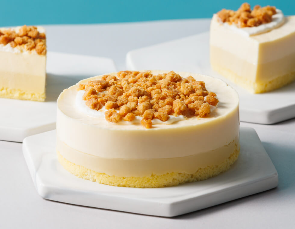 濃厚なゴルゴンゾーラクリーム層と、マスカルポーネの優しい甘みが引き立つムースを重ね合わせました。 チーズの風味を存分に楽しめるケーキです。