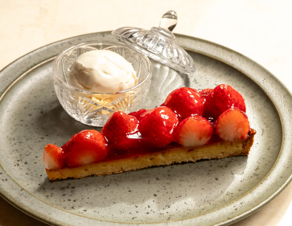 香ばしいシュクレタルト生地と風味豊かなアーモンドクリームに、真っ赤ないちごをたっぷりのせたTOOTH TOOTHのベストオブタルト。