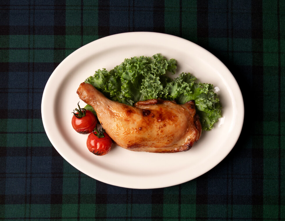 ジューシーでコクのある国産どりのもも肉をローストしました。