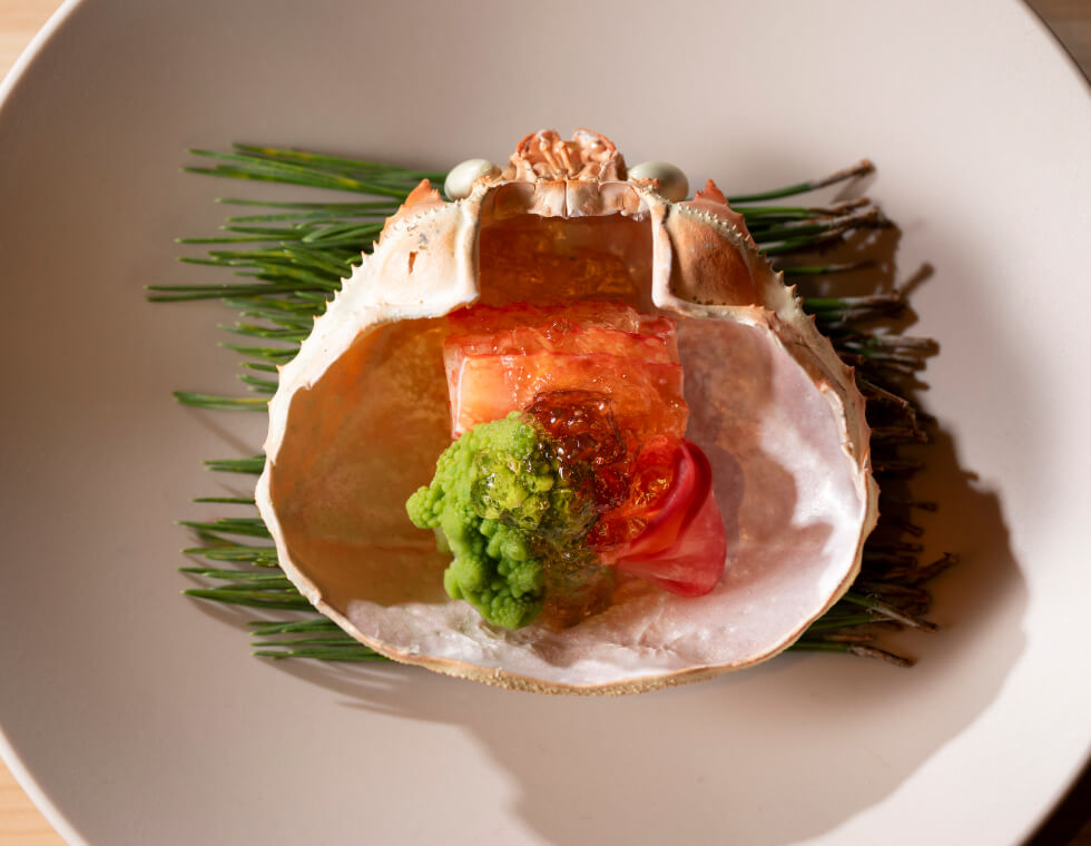 ずわい蟹、本鮪、米沢牛など厳選素材を使った冬の味覚を堪能できるカウンター席限定の特別コースです。(アルコールペアリング付)
